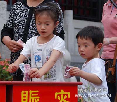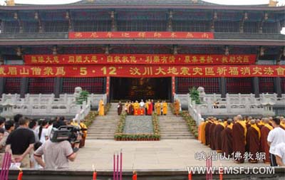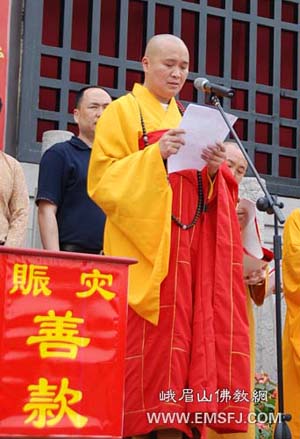 峨眉山佛教协会经过几天的抗震自救工作后,全山已基本恢复正常。“无缘大慈,同体大悲;自救救他,利乐有情”,5月17日下午3点,峨眉山佛教协会组织全山的僧职人员,在峨眉山大佛禅院为汶川、北川等重灾区举行募捐活动。活动中全山的僧人员工们踊跃捐款,一些信众也闻讯赶来活动现场献上自己的爱心,场面令人感动。