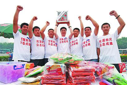 2008年5月17日,“泉城义工赈灾义卖大集”在山东省济南舜耕国际会展中心西广场举行首期活动,29家企业现场义卖价值63万余元的物品。经过泉城义工呼吁和济南市民的积极参与,爱心商品义卖筹集善款33078.4元,为灾区人民献上了一份爱心。