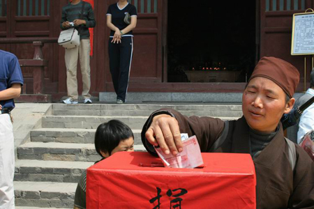 终南山上茅棚的比丘尼将自己刚刚领到的生活补贴也放到了捐款箱里