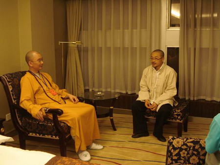 学诚法师就佛教徒面对灾难时的行动接受央视记者采访