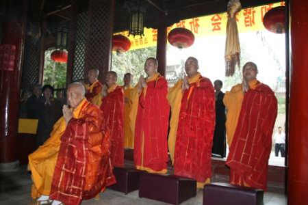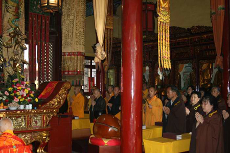 长安区终南山佛教协会名誉会长、护国兴教寺方丈常明长老主法,长安区终南山佛教协会会长、青龙寺住持宽旭法师,终南山佛教协会副会长兼秘书长、兴教寺监院宽池法师,香积寺住持本昌法师、紫竹林监院宽印法师、菩提寺住持宽道法师等主法。