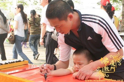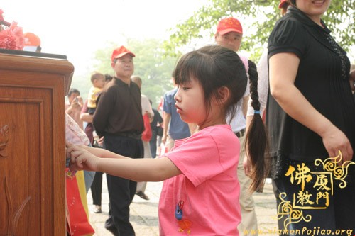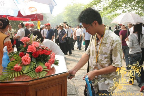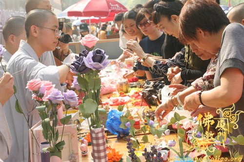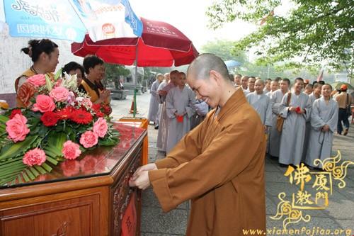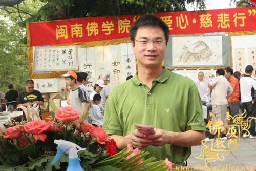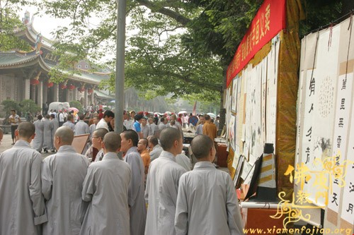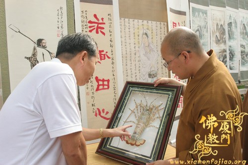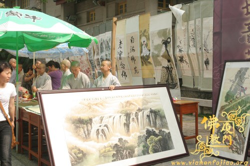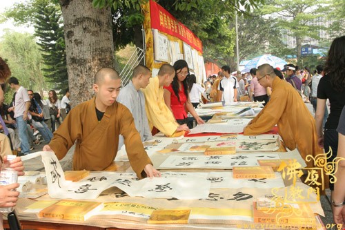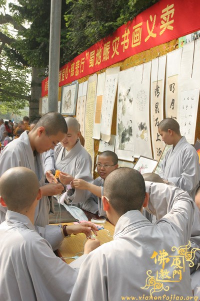 为了参加义卖,闽南佛学院女众部学僧打着手电筒连夜赶制手工折花等种种精美物品,又拿出了很多珍贵礼物,其中包括一位在家人赠送的“龙虾标本”。捐完款后,不少学僧留在现场,参加现场义卖活动,有的还在现场编织如意结,赠送给游客。现场另有学僧在泼墨挥毫,厦大的学生也赶来帮忙了,信众游客也随喜参加了义卖活动。义卖善款收入8.0312万元。