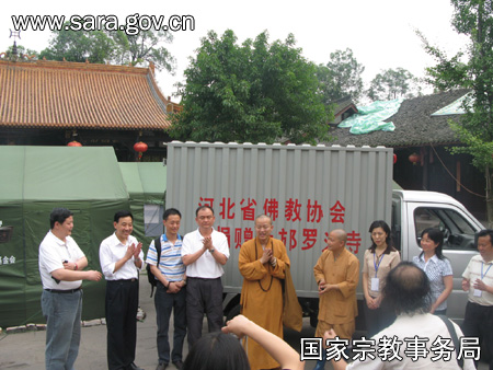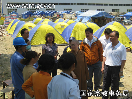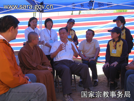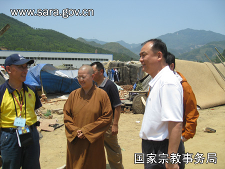 5月18日,国家宗教局齐晓飞副局长飞赴四川,指导四川省宗教工作部门和宗教界的赈灾工作,慰问来四川赈灾的台湾佛教慈善团体人员。