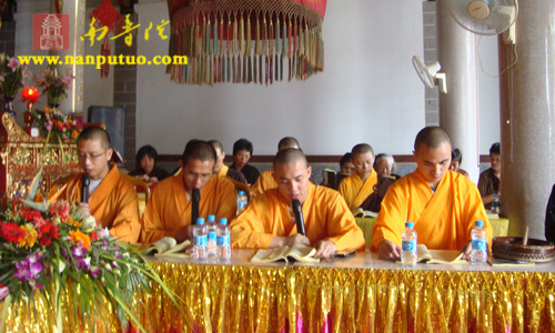 法会期间,四众弟子收摄身心、三时系念,恭诵《仁王护国般若经》,礼拜《慈悲三味水忏》、《药师宝忏》,并施放瑜伽焰口,为四川灾区同胞祈福消灾,体现了佛子感同身受的悲悯情怀和与乐拔苦的菩萨心肠,同时法师们更希望通过自己的努力,影响更多的人伸出支援之手,聚小爱成大爱。