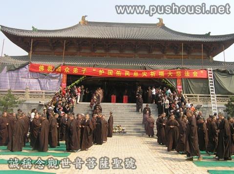 2008年5月15日上午9:00于榆次大乘寺大殿举办“佛教四众弟子护国佑民祈福息灾大悲法会”,参加法会的有太原弥陀寺上妙下德老和尚、妙吉祥寺的全体法师、榆次宗教局佛教协会、大乘寺全体尼众以及从四面八方闻讯赶来的信众达800余人。法会时间近两个小时,诵《观世音菩萨普门品》和《大悲咒》,接着法师们及众善信捐款,共捐款30万人民币。“片片爱心济灾情”以我们佛子的一颗赤诚真心献上一份真情,愿所有受灾的众生皆悉离苦得乐,早日重建家园。