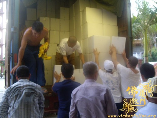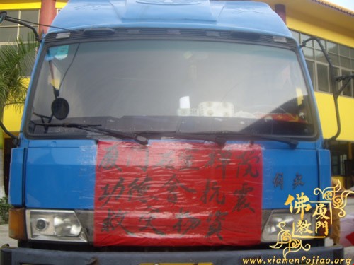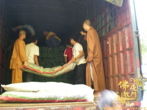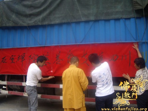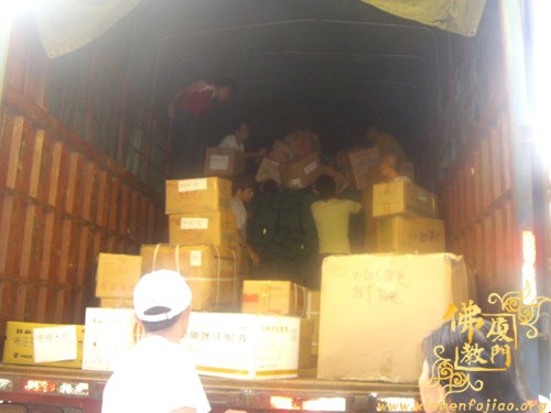 5月23日,石室禅院慈善功德会将向各界募集的物资,由厦门汉航创业有限公司、厦门汉航物流有限公司义务承运。于当日晚7点装车发往四川,预计26日,在地震灾区的石室禅院慈善功德会四位志愿者便可收到该批物资并尽快分发到受灾群众的手里。