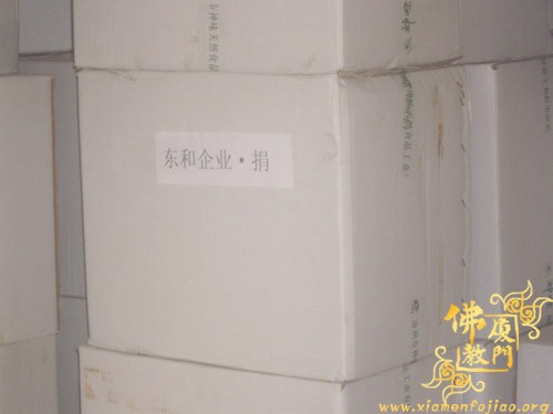 5月22日,中华文化网厦门东和生物药食医用研究所向厦门市石室禅院慈善功德会捐赠价值115万元的健康365(三菇)营养液和土金香,支援四川地震灾。这批物资共680箱,其中515箱已于5月23日发往四川。