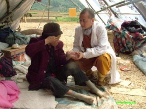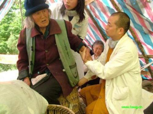 重庆华岩寺道坚方丈在灾后第二天亲率“僧伽抗震救灾小分队”,前往大地震的重灾区北川县县城、陈家坝乡、雷鼓镇以及平武县等震情最严重地区展开救护、救援工作。 为灾区的父老乡亲疗伤