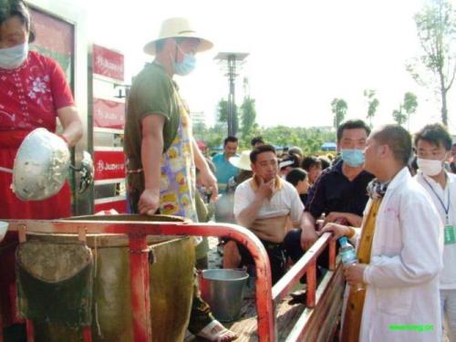 在灾区现场施粥