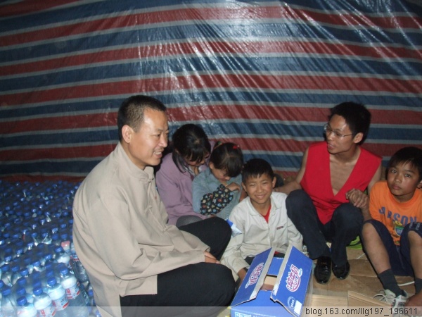 在物资堆放现场,我们看到昨天去时还空荡荡的地方,堆满了救灾物资,在救灾物资旁,坐着一家从山里逃难的人,眼里还夹杂着一丝恐惧,看着他们无家可归,一无所有,到处避难的样子,心中阵阵酸楚,为了鼓励他们坚强地面对生活,我还是与他们进行了简单的交谈,祝愿他们能够有一个安稳的人生。