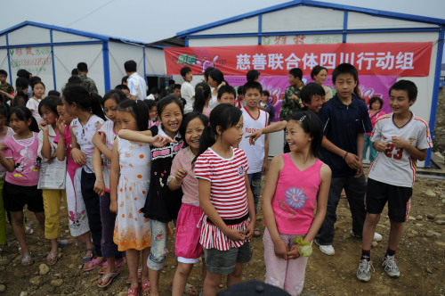 欢笑在灾后的孩子们中传递……