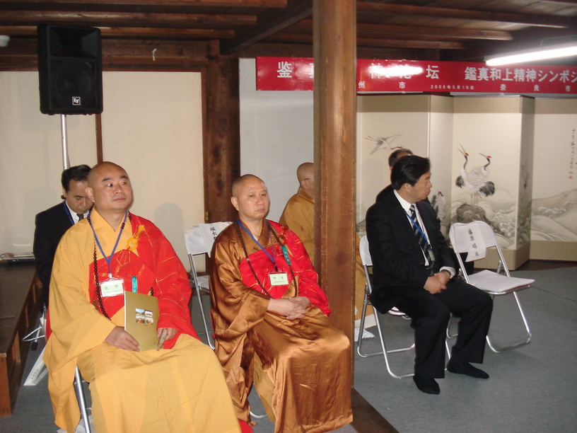 5月10日上午9时,“鉴真精神论坛”在日本奈良唐招提寺东室隆重举行。扬州市委书记季建业、日本奈良市市长藤原昭、中国佛教协会副会长明生法师、扬州大明寺方丈能修法师、奈良唐招提寺长老松浦俊海等出席论坛并发表了热情洋溢的致辞。复旦大学教授钱文忠、日本奈良大学教授东野治之、日本原福井大学讲师陈宽等学者先后就鉴真精神的内涵及其对发展中日友好的现实意义进行了研讨,双方学者还就鉴真对中日文化交流所作出的贡献作了深层次的探讨。双方认为,鉴真大师东渡日本弘法,不仅在佛教史上,同时也在中日文化交流史和友好交往史上都闪耀着不可磨灭的光辉。