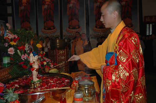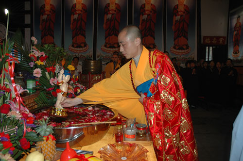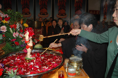 2008年5月12日(农历四月初八)是佛教最重要的节日——佛诞节。相传这一天是佛教创始人释迦牟尼佛的诞辰。上午,苏州北塔报恩寺举行了盛大的浴佛节法会,通过诵经、浴佛等活动纪念佛陀的诞生,市内百余名信众参加了法会。