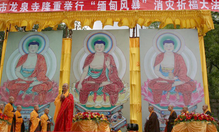 2008年5月12日(农历四月初八),北京龙泉寺隆重启建“缅甸风暴”消灾祈福大法会暨浴佛节法会,为受灾地区,为一切苦难众生,消灾祈福,期盼他们能尽快重建家园,祈愿世界和平、人民安康!法会由中国佛教协会副会长兼秘书长学诚法师主法。