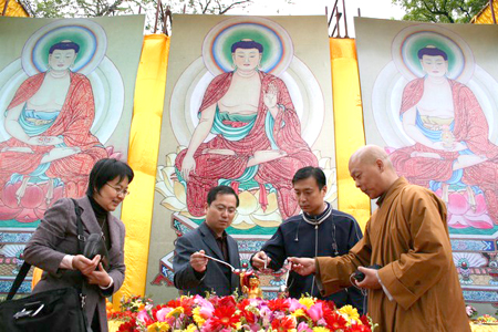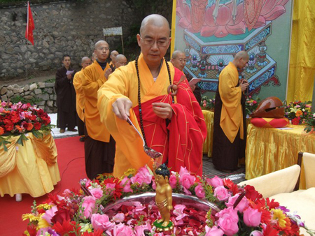 中国佛教协会副会长兼秘书长学诚法师领众浴佛