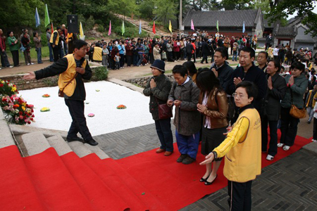 在声声“南无本师释迦牟尼佛”的佛号声中,法会正式开始。首先学诚法师为四众弟子开示浴佛法会的意义及目的。随后,在“我今灌沐诸如来,净智庄严功德海,五浊众生离尘垢,同证如来净法身。……”的梵呗声中,学诚法师带领僧俗二众开始依次浴佛。