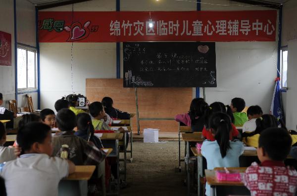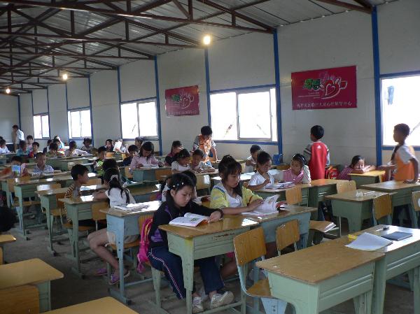 对灾区孩子来说,没有一种方式比上学更快找回他们的童年。