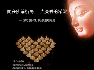 让我们为他们祈福,虽然我们不同信仰,我们愿佛光来照着你,让灾区人民知道:我们和你们在一起!我们会继续祈求佛光永远照着你...