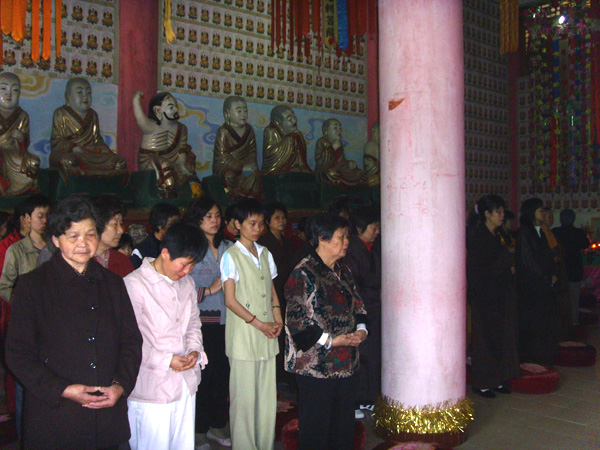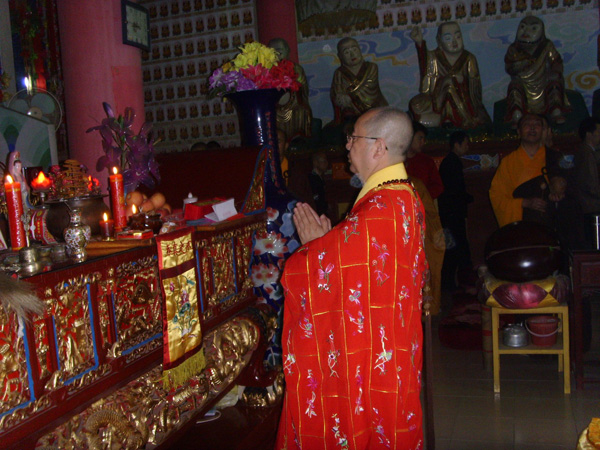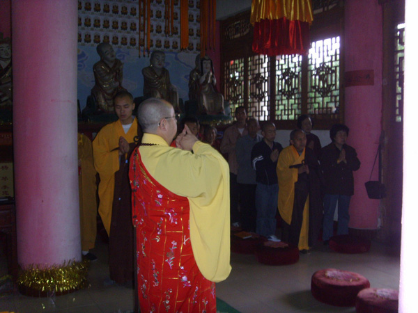2008年5月15晨,海空法师率四众弟子在四川中江白塔寺,为地震受难众生举行消灾祈福法会.衷心祈望:死难者蒙佛慈力得生极乐国土,受伤者身体康复,灾难蠲除,生活安乐!