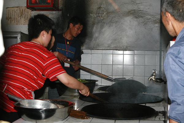 正在炒菜烩面的志愿者