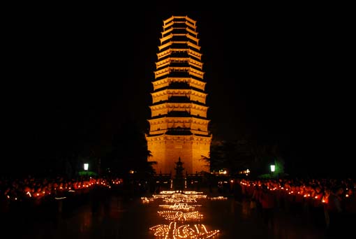 四月初七日晚八时,在法门寺监院智超法师的主持下举行了传灯晚会,通过传灯,启发我们本自具有的光明智慧,感恩佛陀悲愍众生,救拔我等弟子脱离苦海,获得究竟安乐。