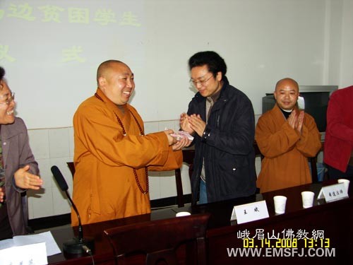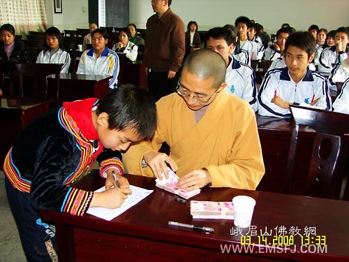 应部分学校的邀请,佛协常务副会长传智法师,副会长果正法师,本道、镇祥、心诚、镇定、永灯、悟圆等法师代表峨眉山全山僧众和社会爱心人士分别奔赴沐川中学、马边彝族自治县、峨边彝族自治县、峨眉一中、峨嵋二中等学校开展了进校助学活动,向受助学生送去了慰问和鼓励。受到学校所在地党政领导、学校领导和师生们的热烈欢迎。