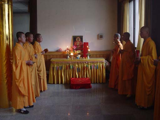 佛学院师生每天读诵《妙法莲华经》为四川地震灾区的众生超度、祈福、回向。祈愿亡者往生西方极乐世界,灾区人民早日脱离危险并以此诵经功德,回向所有受伤者身体早日康复,遇难者的家属,早日抚平伤痛,化悲痛为力量,运用智慧与双手重建美好家园!