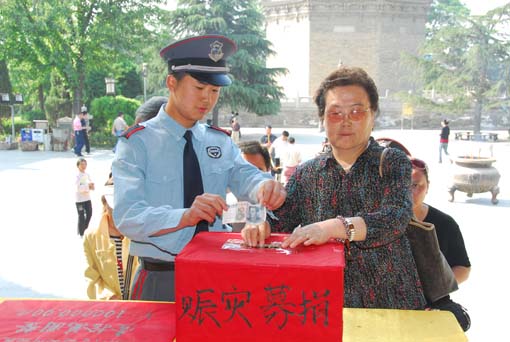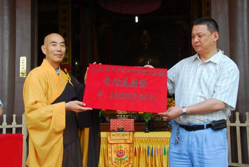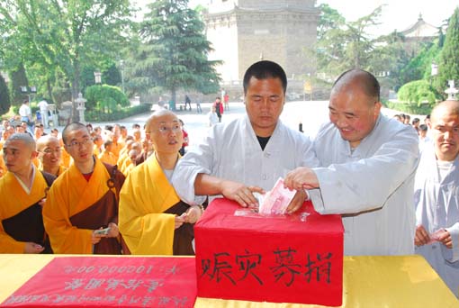 2008年5月19日, 众志成城,抗震救灾。在法门寺方丈学诚大和尚的倡导组织下,陕西法门寺为四川地震灾区举行捐款、祈福、超度大法会。