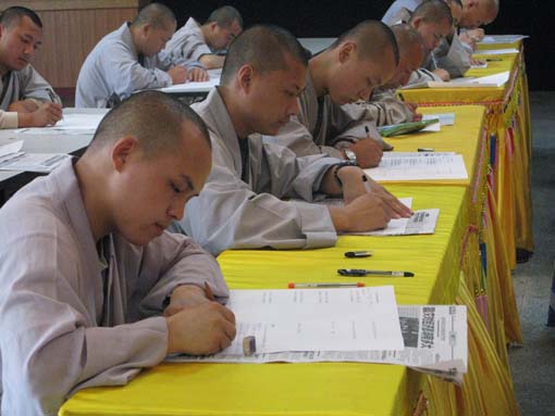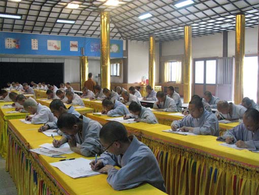 2008年5月26日至30日,陕西法门寺佛学院举行期中考试。为了落实院长学诚法师提出的以“信仰为根本,以解脱为目的,教肓为中心,以文化为纽带”的办学理念,提升我院的教学质量和僧格的养成,在夏安居期间增加100小时的戒律课程,全体师生都参加结夏安居,佛学院8月11日至15日将举行期末考试。