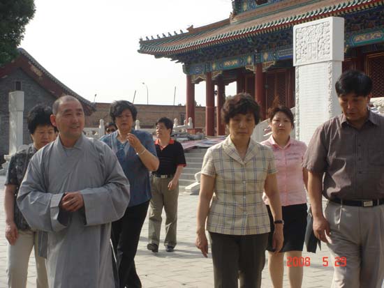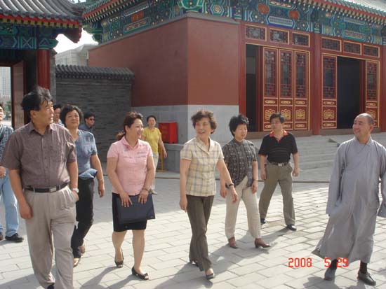 5月29日下午四点,市人大民族宗教委员会主任王之球、副主任石晨燕一行在河北区人大副主任刘俊英、区人大顾问马德香等人陪同下来大悲禅院视察指导工作。