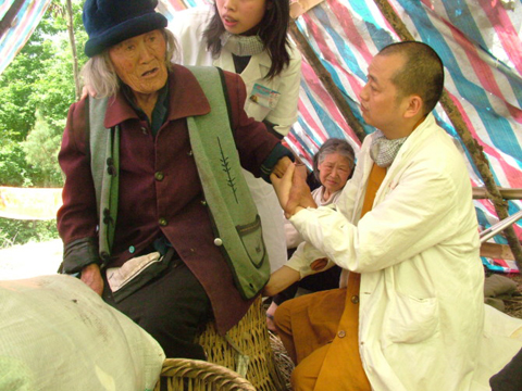 中国佛网讯:来自四川地震灾区的现场报道,重庆市佛教协会副会长、重庆华岩寺方丈、重庆市华岩文教基金会理事长道坚法师带领由重庆华岩文教基金会和庐山东林寺慈善功德会组成的赈灾队伍,在北川县县城、陈家坝乡、雷鼓镇以及平武县等震情最严重地区展开救援工作。据悉道坚法师所率赈灾队伍自17日到达灾区后一直身处在救援行动的最前线。利用自身专业优势,对灾区群众开展医疗诊治、心理抚慰、分拨食物以及教育孩童。连日来,道坚法师少有休息,奔走断壁残垣间搜救受难人员,躬身帐篷陋屋内医治疾患,探问灾区最需援助灾区,慰藉孩童重建美好家园。截止发稿时,道坚法师率赈灾队已在受灾最严重的北川县、平武县大部乡镇村落进行援助。这在民间佛教赈灾团队里是仅有的。而赈灾队伍是最早进入核心灾区的民间救援团队。且队伍救援所涉及区域之广,人数之多在民间赈灾团队里都是鲜有的。