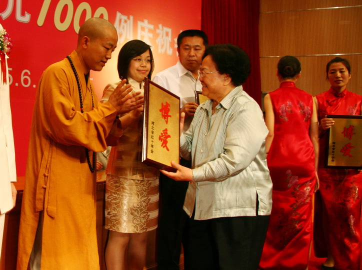 彭佩云会长为此次救助活动的主要参与方——香港慈辉佛教基金会、河北省佛教协会、柏林禅寺、海军政治部文工团颁发了“博爱”奖牌,以表彰在救助活动中的重要贡献。