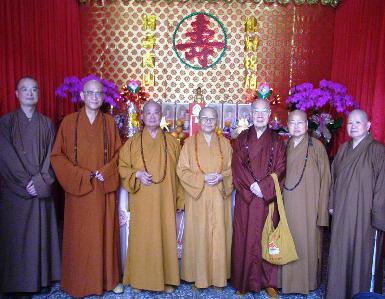 净良、圆宗、今能、照定、明伟、常源等长老法师向圣海长老尼祝寿