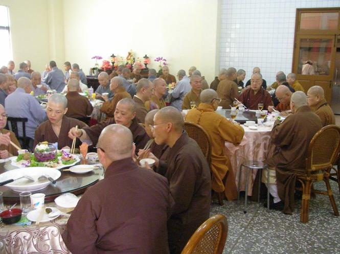 当日上午,该会理事长净良长老为不增圣海长老尼劳累,特迟至十一时上供之间前往祝贺,但因祝寿访客颇多,妙觥寺常住临时决定提早上供,在净良长老到达时,正好开始用斋,为台北县佛教会理事长照定法师首先瞧见,即大声欢呼并鼓掌欢迎,以致惊动大家,使净良长老顿时进退失据,不但深表欠意,还得向在座用斋的本会副理事长圆宗长老、常务理事觉华法师、理事今能长老、广乐法师等及台北县佛教会理事长照定法师、新竹县佛教会前任理事长达文法师、秘书文澈法师及马来西亚极乐寺日恒法师、明伟、如辉,以及台中的明实等法师一一招呼致意,虽然寿星圣海长老尼格外感到喜悦,但毕竟迟到,有失敬意!