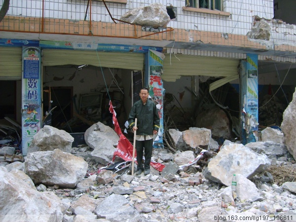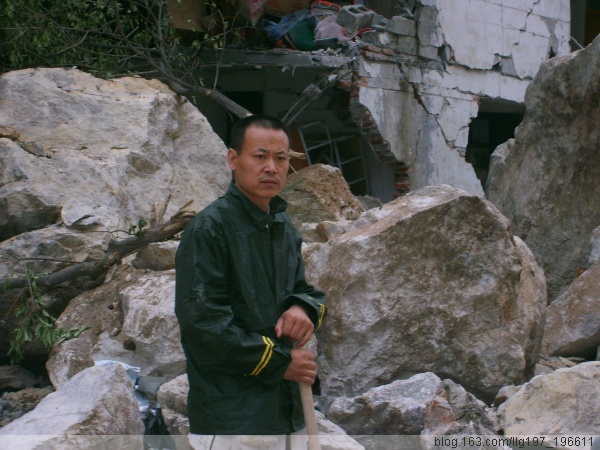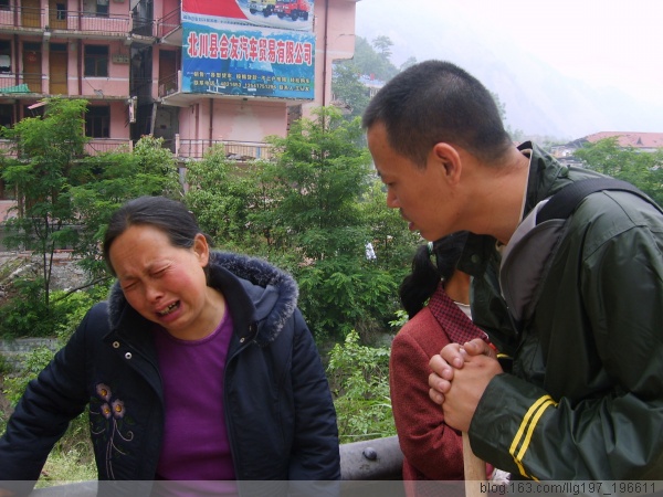 2008年5月14日一早,我们赶赴地震灾区受灾最严重的绵阳市北川县,一大早就赶往北川,在我们所经过的地方,处处是倒塌的房屋,从绵阳市出来以后不久,路边就经常看到倒塌的震裂的房屋,映现在我们面前的是一处处残垣断壁,到达江油的时候,就看到整片倒塌的房屋,越往前走,情况就越严重,经过太洪乡太洪村的时候,我们看到的是沟里面大堆的泥石流,我们停下车,问路边的百姓,才知道里面埋藏了两个村庄,几十口人都被埋进废墟,已经毫无希望。到达陈家坝乡的时候,被眼前的景象惊呆了,我们面前出现了一段倒塌的大桥,眼前的路断了,车辆已经不能继续前行,我们步行越过一处沟堑,到达了陈家坝,陈家坝乡到处都是整片倒塌的房屋,首先看到一个人在废墟中钻了出来,我们赶紧去问他,原来他的妻子被埋进废墟中,他在自己钻进去寻找,他的名字叫杨正银,是乡里的一个干部,还有一个人叫孙勇,他的爱人和三个月大的儿子也被埋在里面,另外还有两个老太太,里面一共五个人,在另外的几处地方,我们还听到废墟中有人敲击木头的声音,还听到有人呼救的声音,但是由于没有大型机械,我们面对水泥钢筋,无可奈何,我们离开的时候,部队进入陈家坝,展开了救助。