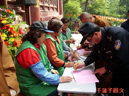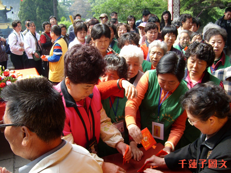 2008年5月14日,山东省青岛市湛山寺僧众举办为四川地震灾区捐款献爱心活动。