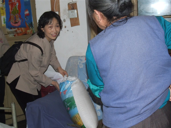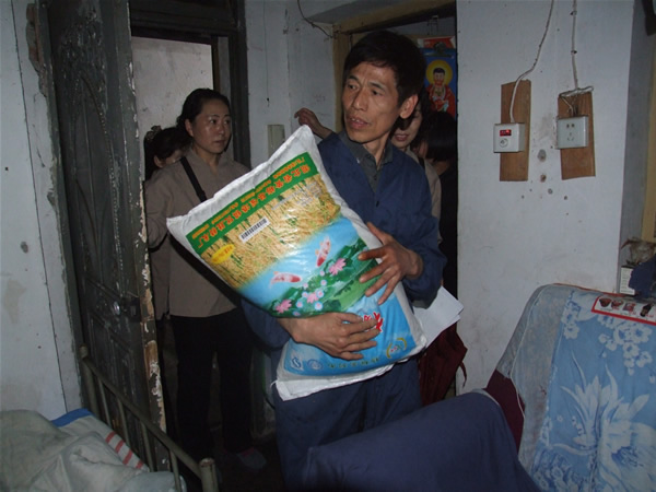 3、对于暂时无米下炊的家庭由志愿者一个月给他们送一次大米、食用油等生活用品,及时了解他们的需要,帮他们站起来重新回到社会