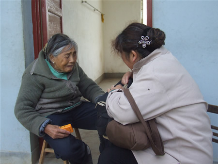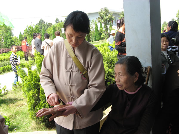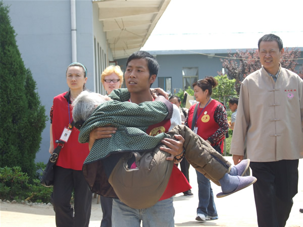 “南无阿弥陀佛!南无阿弥陀佛!……”一声声佛号从老人,残疾人,肝硬化晚期的病人,痴呆人,精神病人的口中传出,他们念的那么认真,那么投入,似心在极乐,脸上露出的是喜悦的笑容。地处山凹,在绿树成荫包围下的宁静的温泉镇敬老院回荡着一声声佛号;念佛的似乎找到了归家的路,在义诊处看病的人却像是解下了身上沉重的包袱,老人拿着疗疾的药品轻快地回到自己的房间。对于这次难得的义诊机会,敬老院所住的50余名形色各异的男女老少很珍惜这种难得的机会,年轻的帮扶年老体衰的老人前去看病,而那些生活无自理能力的老人,我们的志工抱着她们前去看病,帮她们解决一些小毛病,看着老老少少脸上露出的灿烂笑脸,我们的内心感到无比的欣慰。