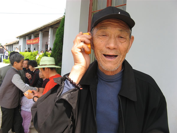 踏着笑声,一位志工跟我说,有个痴呆儿拿着我们的念佛机,听闻佛号,跟着念时,流下了喜悦的泪水,虽然问他问题的时候他呆呆傻傻不太清楚事情,一闻佛号,许是有了“妈妈,我在外流浪太久了,我要回家”的心灵感应,不觉流下了泪水。我们的老菩萨无法跟他在语言上作更深的交谈,在表情中,善解人意的老菩萨们却已读懂了他内心的呼唤和感动。一个只有23岁的年轻人,在朝气蓬勃的青年时期,过着与别人完全不一样的生活,对这个世界,对自己的人生,只能呆呆傻傻懵懵懂懂地活着,为何?他似曾想过?佛教三世通因果,真实不虚,有几人能信?还有那个28岁肝硬化腹水晚期的病人,6年前便被村里送进了敬老院,整日挺着装满腹水的便便大腹,神情木然地生活在这个人世间,在生死线上挣扎着,一天一天的捱着日子,今天我们去看望他,下回我们再去时,还能看到他吗?这种重病带来的生命的无常谁能预料?