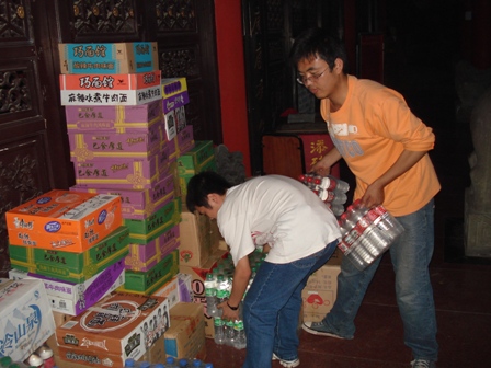 在重庆工学院环保协会的积极组织下,重庆工学院学生捐献600余瓶矿泉水和300余箱方便面、饼干等食品用于华岩文教基金会赈灾。这些赈灾物资已于2008年5月16日晚送达华岩寺,将尽快送至赈灾前线。