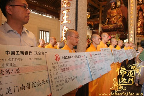 厦门佛教界 南普陀寺为地震灾区人民举行消灾祈福法会并现场捐款118.3万元