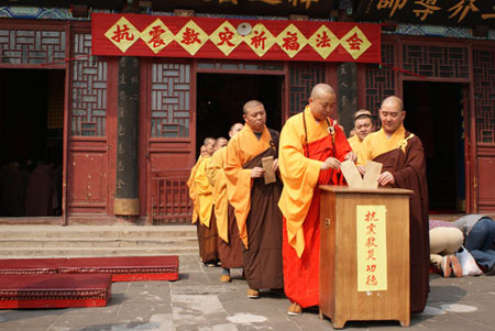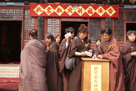 2008年5月14上午,天津市大悲禅院启建抗震救灾祈福法会,大悲禅院方丈智如法师主法,回向在四川汶川地区大地震遇难的同胞。法会结束后,智如法师率全寺僧众向地震灾区捐款。