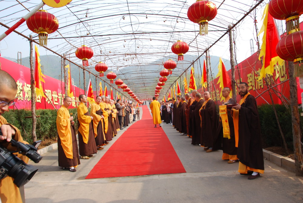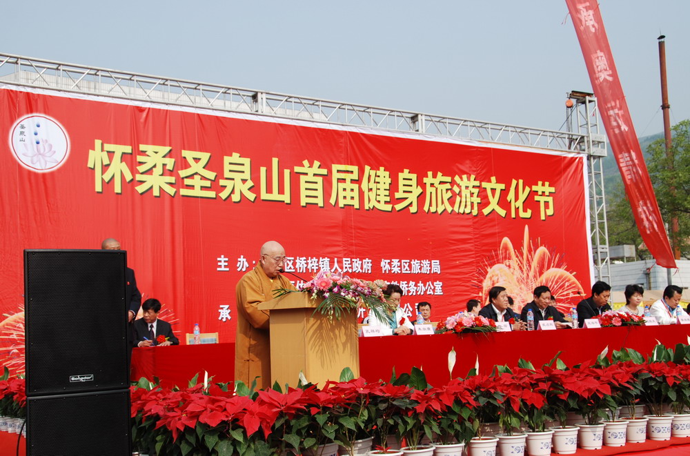 2008年4月28日,北京怀柔圣泉寺佛教文化苑举行佛像开光法会.上午9时,诸位法师及方丈,首先参加了圣泉山的健身旅游文化节。活动主题:祝福奥运,共建和谐.10时,开光法会隆重举行,由传印长老、常辉法师、明奘法师等法师主法开光.