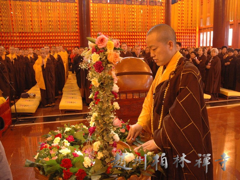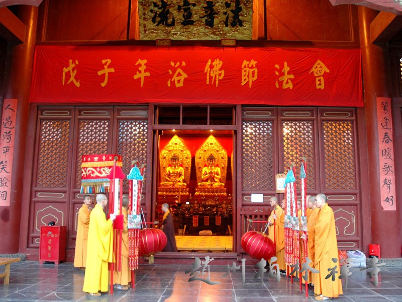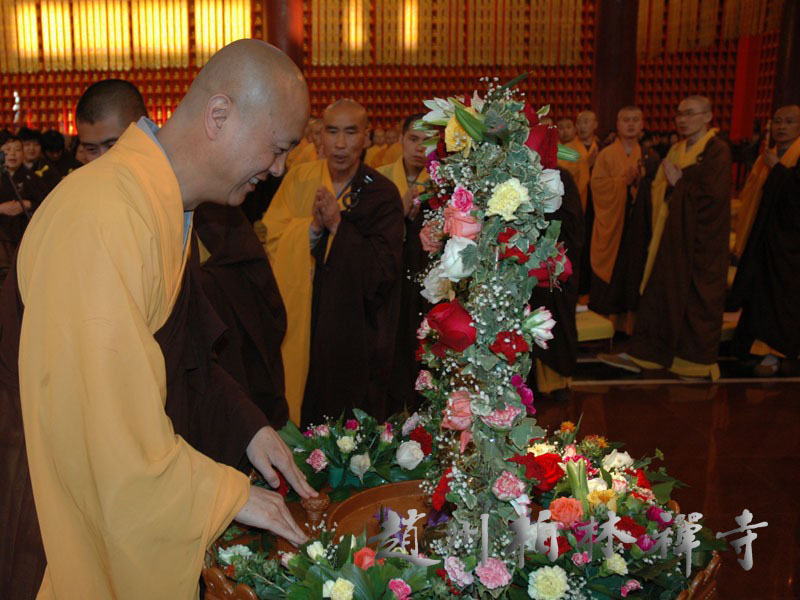 佛诞日到来前的三天(5月09~11日),寺院为数百名在家居士传授了菩萨戒。12日早课时,在万佛楼举行了隆重的浴佛仪式,上午并举行了祝圣普佛和浴佛大供。中午在万佛楼为大众传授三皈五戒,浴佛节法会至此圆满结束。