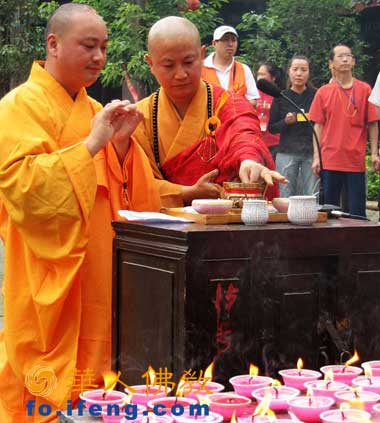 素全法师和江西南昌文昌寺的觉海法师共同拈香祈祷