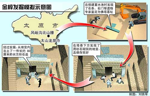 据专家介绍,根据唐代佛教文化推测,太山龙泉寺出土的金棺内,至少还应有一个宝瓶,可能装有佛舍利。