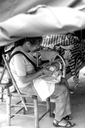 5月18日,记者走进古寺,什邡市妇幼保健院已全部转移到这里。寺里一个平坝上收容着整个什邡市所有的临产孕妇,四处是帐篷和简易地铺。听当地村民说,罗汉寺在唐朝就有了,千年来只要有大的灾难,什邡的人们都会到寺里寻得暂时的平安。