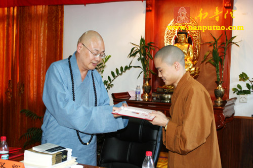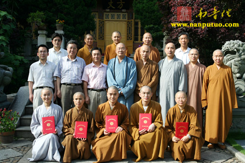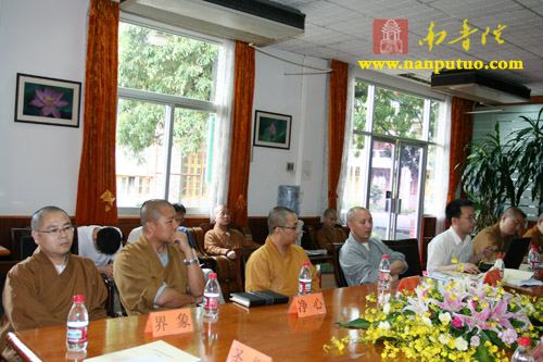 我寺方丈则悟大和尚、闽院副院长法源法师、院长助理兼教务长传明法师等