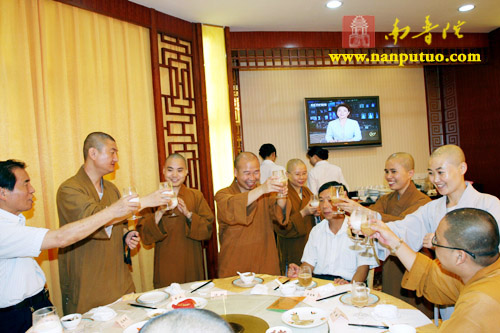 11时30分,市民宗局和闽南佛学院在普照楼设宴,共同庆祝本届研究生顺利完成学业。