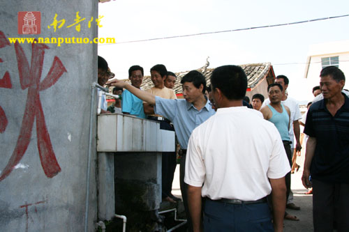 仪式结束后,村主任还向我们介绍了已经竣工的饮水工程,当场向大家展示了新的纯净水,并告诉大家,现在的水质在全县属前列。看到村民们微笑的面容,大家皆为长江村有如此健康、洁净的水源而高兴。